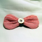 - Brosa cu papion din bumbac,cu dungulite,decorata cu nasture din sidef